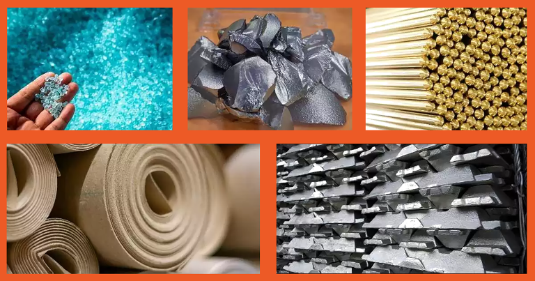 The term raw materials refers to materials in unprocessed or minimally processed states such as raw latex, cotton, coal, raw biomass, iron ore, plastic, etc.